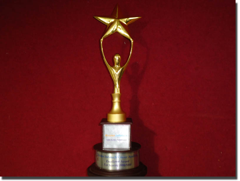 Xmetric cheer up students for scoring out of marks in global certification exams adn award with a Xmetric Trophy.